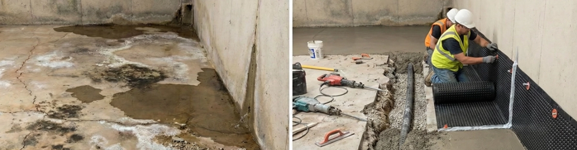 Water enters through cracks and weak joints. The pressure builds against foundation surfaces constantly. But poor drainage makes the situation worse quickly. The moisture stays trapped inside basement spaces. So surfaces remain damp for long periods. The trapped water encourages mold and harmful growth. You may see floor and wall damage soon. Now repair costs increase beyond expected budgets. Sometimes surface coatings fail under heavy moisture pressure completely. Modern drainage systems address root causes effectively and protect foundation strength.